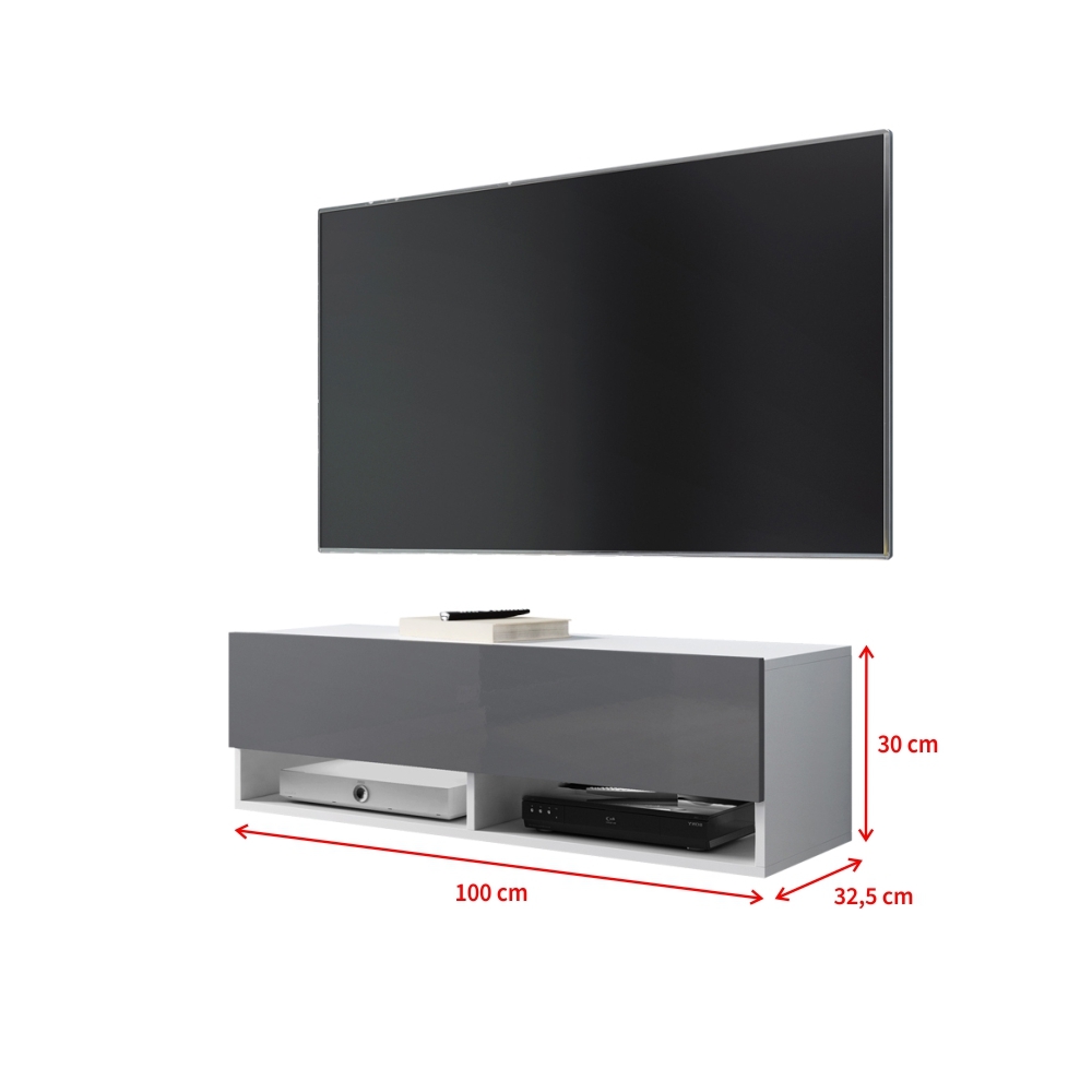 Meuble Tv Armoire Bas Boston 100 Cm Corps Blanc Mat Avant Gris Brillant Ebay