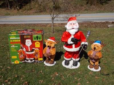 Gemmy Animated Dancing Santa Friends Trio Band Lowe S