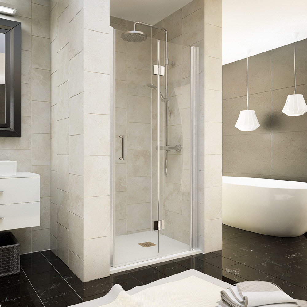 Sprchové dveře zalamovací. Sprchové dveře jsou vhodné pro umístění v koupelnách do nik nebo pro instalaci v kombinaci s pevnou boční stěnou. Sprchové dveře lze využít jako zástěnu do sprchového koutu nebo do niky nebo je lze využít také jako vstupní dveře do koupelny. Nabízíme vám sprchové dveře s různými druhy otevírání od standardního otevírání do prostoru přes posuvné otevírání až po otevírání zalamovací či skládací. Sprchové dveře jsou ideálním řešením pro uzavření niky ve vaší koupelně.